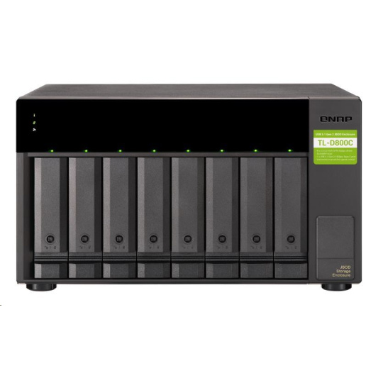 Úložná jednotka JBOD TL-D800C vám umožňuje zálohovanie a rozšírenie vášho zariadenia QNAP NAS. Zariadenie TL-D800C má osem 3,5" diskových pozícií SATA 6Gb/s s konektivitou USB 3.2 Gen2 (10 Gb/s) typu C pre zabezpečenie riešenia, ktoré umožňuje rýchle a jednoduché rozšírenie.