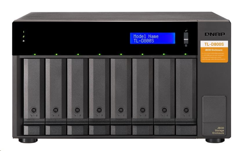 Úložná jednotka JBOD TL-D800S vám umožňuje zálohovanie a rozšírenie vašich zariadení QNAP NAS, počítačov so systémom Windows® a Ubuntu® a serverov. Zariadenie TL-D800S má osem 3,5" pozícií pre diskové jednotky SATA 6Gb/s a dodáva sa s kartou QXP PCIe pre pripojenie jednotky pomocou kábla SFF-8088 (alebo SFF-8644). Poskytuje spoľahlivý výkon pri čítaní a zápise pre plynulé ukladanie a zálohovanie.