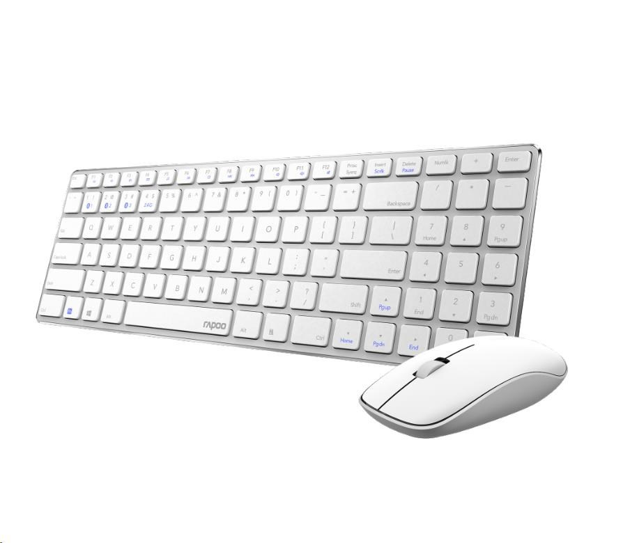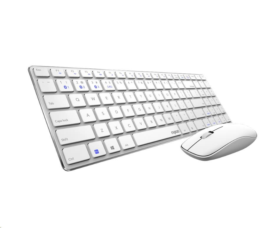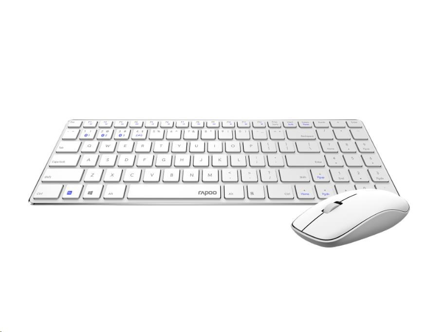 Súprava klávesnice a myši RAPOO 9300M, bezdrôtová, viacrežimová tenká myš, ultratenká klávesnica, biela