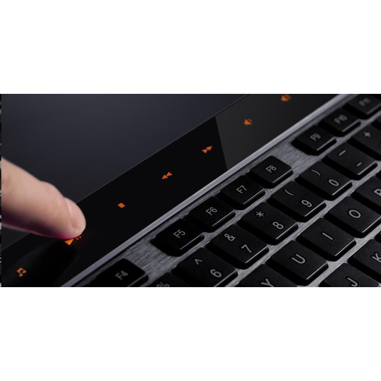 Rapoo E9270P Bezdrôtová klávesnica s dotykovou multimediálnou plochou Výnimočný ocenením IF Design Award Inteligentné multimediálne dotykové tlačidlá Multimediálne klávesy s hmatovou spätou vibráciou Ultra-tenký dizajn s 4,0 mm hrúbkou Elegantná konštrukcia so základňou z nerezovej ocele Spoľahlivé bezdrôtové pripojenie 5GHz Spoľahlivé bezdrôtové pripojenie 5GHz Spoľahlivý bezdrôtový prenos 5GHz ďaleko od rušenia bezdrôtového prenosu 2,4GHz, Bluetooth rozhrania a zariadení WIFI. Inteligentné mediálne tlačidlá Podsvietenie sa rozsvieti, keď sa vaše prsty priblížia k dotykovej ploche; keď sa vaše prsty vzdialia, podsvietenie zhasne; takto máte všetko pod kontrolou aj v tme. Čokoládové tlačidlá s veľmi tenkým profilom Najtenšia 4mm štruktúra z kovovej pružiny a doska z nerezovej ocele prinášajú pohodlnú spätnú väzbu. Prijímač NANO connect-and-forget Taký malý a nenápadný, môžete ho pripojiť k USB portu, zabudnúť na neho a zároveň môžete zabudnúť na stratu pripojenia. Automatické vypnutie Ak klávesnica nezaznamená niekoľko minút žiadny vstup, prepne sa do režimu standby. Vďaka tejto funkcii bude klávesnica vždy pripravená a ušetrí batérie. Napájanie 2x AA alkalické batérie Systémové požiadavky Windows® XP/Vista/7 Windows® 8, USB port Rapoo E9270p 5G Wireless 2 Block Metal Keyboard Black
