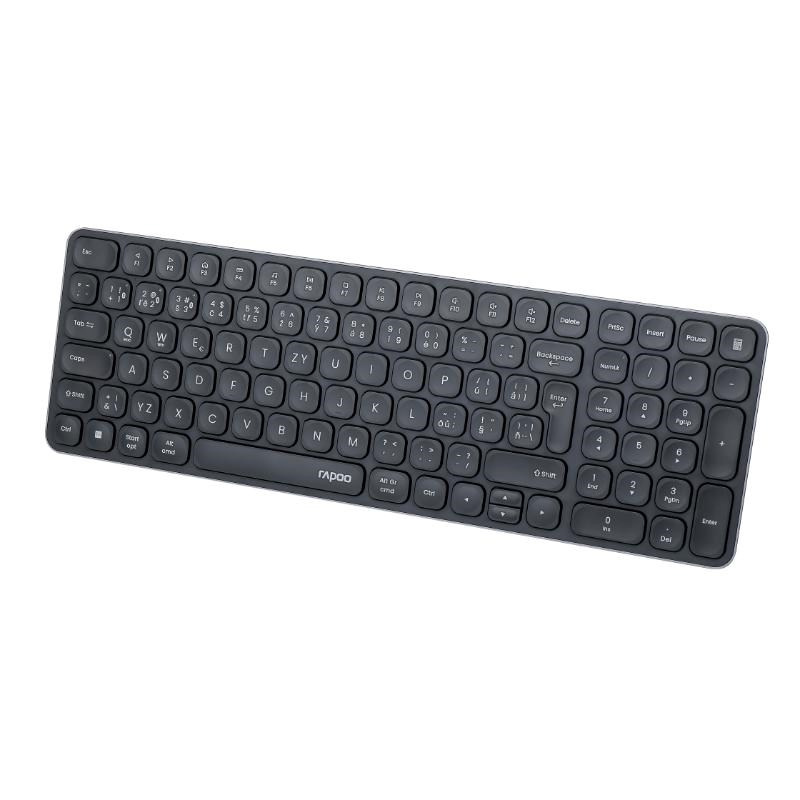 Táto štýlová bezdrôtová klávesnica so svojím elegantným dizajnom vyzerá skvele na akomkoľvek stolnom počítači. Klávesnica sa môže pochváliť pôsobivým 3,9 mm ultratenkým dizajnom a krytom z eloxovaného hliníka. Multimediálne klávesy Fn ponúkajú rýchly prístup ku všetkým dôležitým multimediálnym funkciám. Hoci je klávesnica veľmi kompaktná, má aj klávesy plnej veľkosti, čo výrazne zlepšuje pohodlie pri písaní. E9310M je nielen pokročilý v dizajne, ale aj v funkčnosti. Je vybavený viacrežimovým bezdrôtovým pripojením Rapoo.