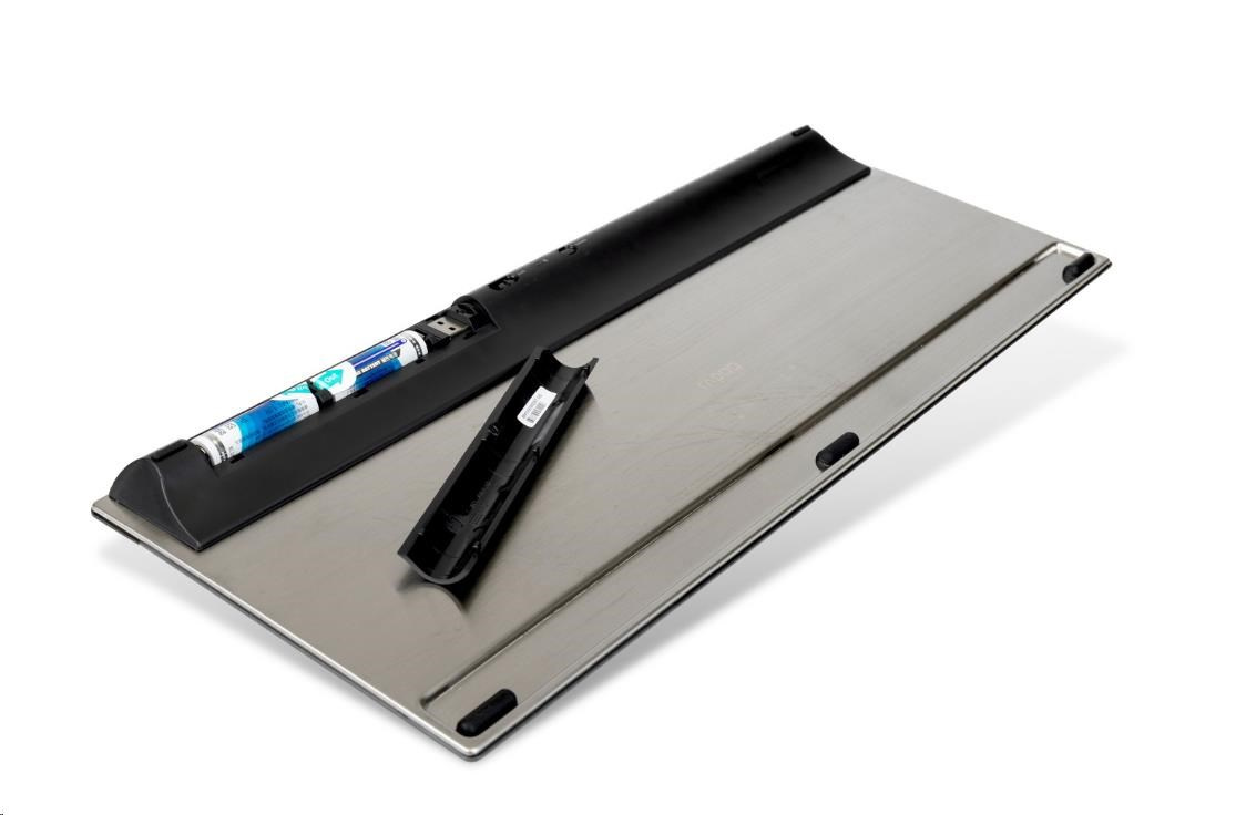 Táto pokročilá stolová súprava kombinuje prémiové funkcie a materiály so štýlovým ultratenkým 4 mm dizajnom klávesnice. Telo klávesnice je vyrobené z brúsenej nehrdzavejúcej ocele a hliníkovej zliatiny a je nielen robustné, ale zároveň dodáva eleganciu každému stolnému počítaču. Klávesnica je vybavená multimediálnymi klávesmi, ktoré umožňujú rýchly a jednoduchý prístup ku všetkým dôležitým multimediálnym funkciám.