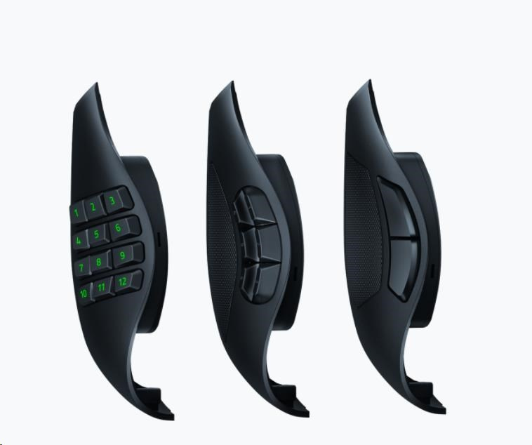 Táto modulárna bezdrôtová herná myš sa dodáva s 3 typmi bočných plôch, ktoré sa prichytávajú magneticky - 12, 6 a 2 tlačidlá sú špeciálne navrhnuté tak, aby vám pomohli prispôsobiť sa rôznym herným žánrom. Optimalizujte svoju hru pomocou týchto odporúčaných konfigurácií tlačidiel pre každú bočnú dosku.