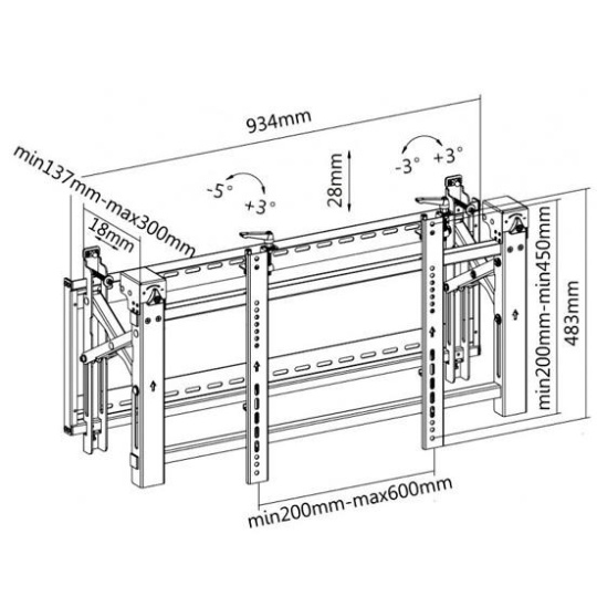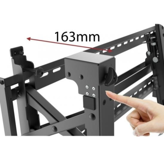 Nástenný oceľový držiak s výsuvným Pop-Out mechanizmom pre vytváranie stien z viac Plasma alebo LCD TV s uhlopriečkou 45"- 70" (114-178cm) a hmotnosťou maximálne 70kg. Uchytenie VESA: 200x200, 300x300, 400x200, 400x400, 600x400. Popis: nie je vertikálne výklopný ani horizontálne otočný, promenlivá vzdialenosť od steny 137-300mm, ochrana proti odcudzeniu, materiál oceľ, farba čierna.