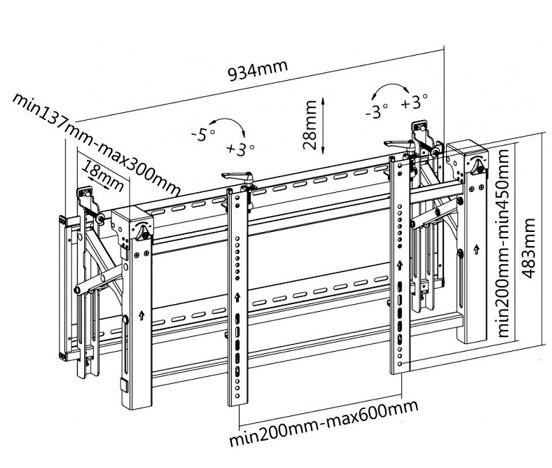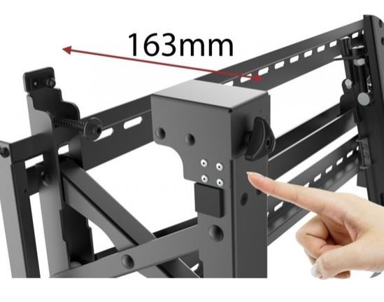 Nástenný oceľový držiak s výsuvným Pop-Out mechanizmom pre vytváranie stien z viac Plasma alebo LCD TV s uhlopriečkou 45"- 70" (114-178cm) a hmotnosťou maximálne 70kg. Uchytenie VESA: 200x200, 300x300, 400x200, 400x400, 600x400. Popis: nie je vertikálne výklopný ani horizontálne otočný, promenlivá vzdialenosť od steny 137-300mm, ochrana proti odcudzeniu, materiál oceľ, farba čierna.