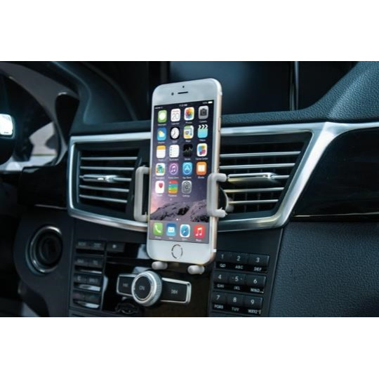 Stojan do auta pre smartfóny s 3-6" dotykovou obrazovkou v horizontálnej a vertikálnej polohe. Prísavný adaptér na sklo a hladkú palubnú dosku s guľovou hlavou na voľné nastavenie, upevnenie na výstupe vzduchu, upevnenie na troch stranách, plast, čierna farba...