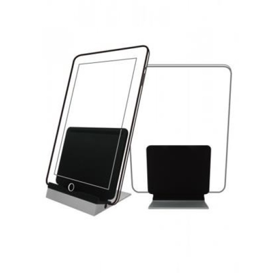 Stojan na 7-11" tablety v horizontálnej a vertikálnej polohe na stole. Robustná dvojdielna hliníková konštrukcia na jednoduchú prepravu a odolnosť proti rozbitiu, tablet sa opiera o spodný okraj, strieborná/čierna...