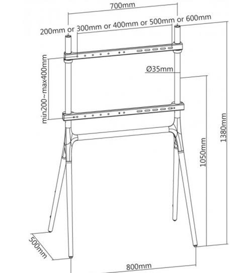 Unikátna televízna skrinka na Plasma a LCD TV s uhlopriečkou 49"- 70" (124-178cm) a hmotnosťou maximálne 40kg. Dizajnová kombinácia kovovej konštrukcie + 4x drevené nohy (orech). Precízne tvary a vedenie káblov pre maximálny estetický zážitok. Upevnenie VESA: 200x200, 300x200, 300x300, 400x200, 400x400, 600x400.