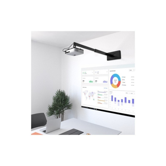 Nástenný držiak na dataprojektory - vzdialenosť od steny 93-152 cm, prístroj je možné otočiť o 360° a nakloniť +/-15°, maximálne zaťaženie 15kg, káblový prechod, čierny. Univerzálny systém upevnenia dataprojektorov (rozsah 5,4-32 cm).