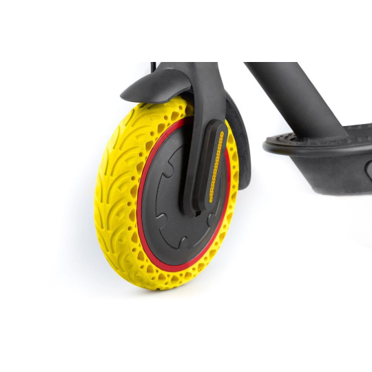 Pevná bezdušová pneumatika je speciálně určená na elektrickou koloběžku. Jedná se o velice univerzální pneumatiku, která je kompatibilní nejen se všemi koloběžkami Xiaomi Scooter, ale také s ostatními značkami koloběžek, které disponují velikostí pneumatik 8,5“ x 2“. Vyrobená je z velmi kvalitního materiálu, díky čemuž je vysoce odolná a na cestách vás nikde nenechá. Jelikož se jedná o pevnou bezdušovou pneumatiku, není třeba se na Vašich cestách obávat propíchnutí duše či ucházení vzduchu z?Vašich pneumatik. Pneumatika je vhodná pro přední i zadní kolo a její Instalací na koloběžku Vás krok po kroku provede videonávod. S?použitím správných nástrojů tuto instalaci zvládnete i vy.