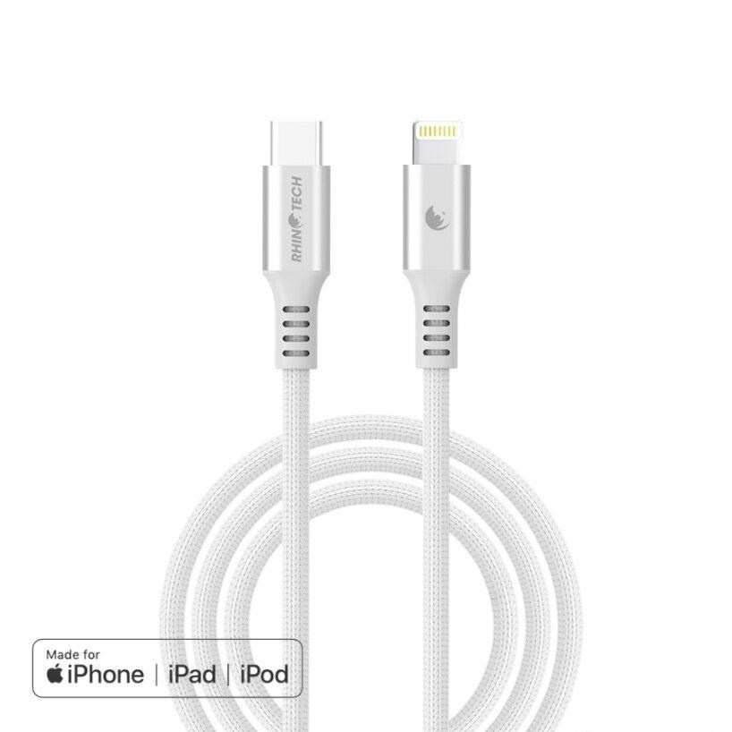 RhinoTech LITE MFi kabel s nylonovým opletem USB-C na Lightning 1.2m stříbrná