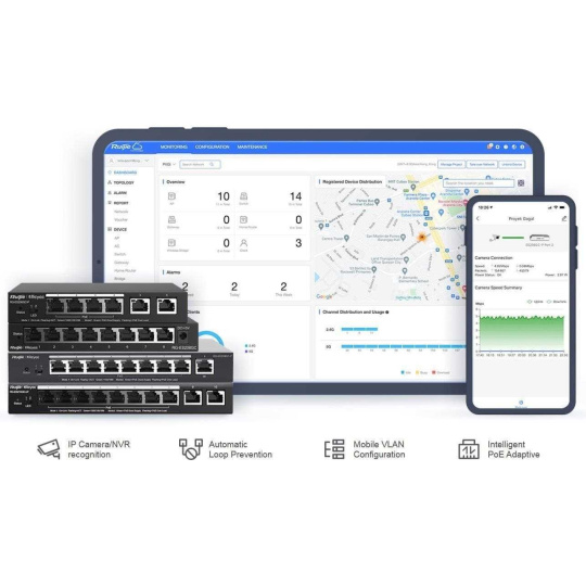 Popis produktu Inteligentní cloudově i přes webové rozhraní spravovatelný smart desktop PoE switch RG-ES210GC-LP od značky Ruijie, nabízí cenově efektivní řešení s 10 Gigabit LAN porty z čehož 8 portů podporuje 802.3af/at PoE s celkovým PoE budgetem 70W. Tento kompaktní přepínač je ideální pro síťové aplikace, které vyžadují výkon a spolehlivost. Co se výčtu funkcí týče, switch nabízí tichý chod bez ventilátorů, podporu až 16 VLAN, DHCP snooping, testování kabelu, ochranou proti zakruhování a v rámci PoE možnost použití až na vzdálenost 250m při snížení linkové rychlosti na 10 Mbps. Klíčové vlastnosti • 10x 10/100/1000 Mbps LAN porty • 8x 802.3af/at PoE - max. 30W/port, PoE budget 70W • Kvalitní provedení, kovové šasi • Bez venilátoru • Nízká spotřeba - max. 10 W • Správa přes webové rozhraní a cloud • Celoživotní správa na Ruijie Cloud kdykoli a kdekoli • Rozpoznávání IP kamer - jedinečná hodnota pro CCTV síť • Automatická prevence proti zakruhování • Podpora Long Range PoE na vzdálenost 250m Obsah balení • Zařízení • Napájecí adaptér 54V/1.5A Technické parametry Konektory a rozhraní Rychlost LAN:(10) 10/100/1000Mbps Napájení Typ napájení:DC konektor Typy PoE:PoE-Out (pouze) Podporované PoE-Out standardy:802.3af, 802.3at Počet PoE Out portů:8 PoE budget [W]:70 PoE na vzdálenost až 250m:Ano Max. spotřeba energie [W]:10 Napájení přes konektor/svorkovnici:54V / 1,5A Fyzické charakteristiky Provedení:Desktop Ventilátory:Bez ventilátoru Šasi:Kovové Tlačítka:Reset Provozní teplota [°C]:0 až 40 Šířka [mm]:202 Výška [mm]:28 Hloubka [mm]:108 Obecné Rychlost přepínání [Gbps]:20 Tabulka MAC adres:4000 Rychlost předávání paketů [Mpps]:14,9 Software Web management:Ano Management:Webové rozhraní, Ruijie cloud Funkce:VLAN, DHCP snooping Výchozí IP adresa:10.44.77.200 Výchozí jméno a heslo:Nastavuje se při prvním spuštění.