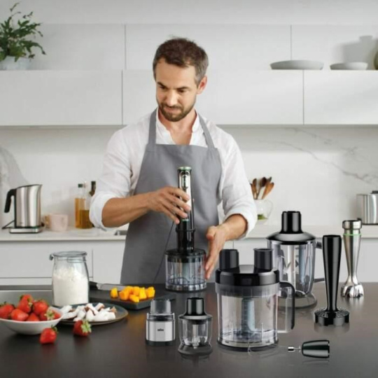 Tyčový mixér Braun MQ 9135BK MultiQuick 9 dokáže vďaka technológiám ActiveBlade a PowerBell vytvoriť najjemnejšie kulinárske výtvory. So 3 režimami rýchlosti iMode a technológiou proti frkaniu surovín SplashControl zvládne v kuchyni takmer všetko.