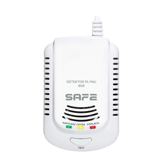 Detektor je vybavený tlačidlom TEST s funkciou, ktorá slúži na umelé simulovanie prítomnosti plynu a umožňuje overenie prevádzkyschopnosti vnútorných obvodov prostredníctvom automatického monitorovacieho systému účinnosti.Hlásič plynu SAFE - 808 je ideálne vhodný na detekciu úniku plynu zo všetkých domácich plynových spotrebičov a plynových kotlov. Detekuje všetky horľavé plyny bežne sa vyskytujúce v domácnostiach.