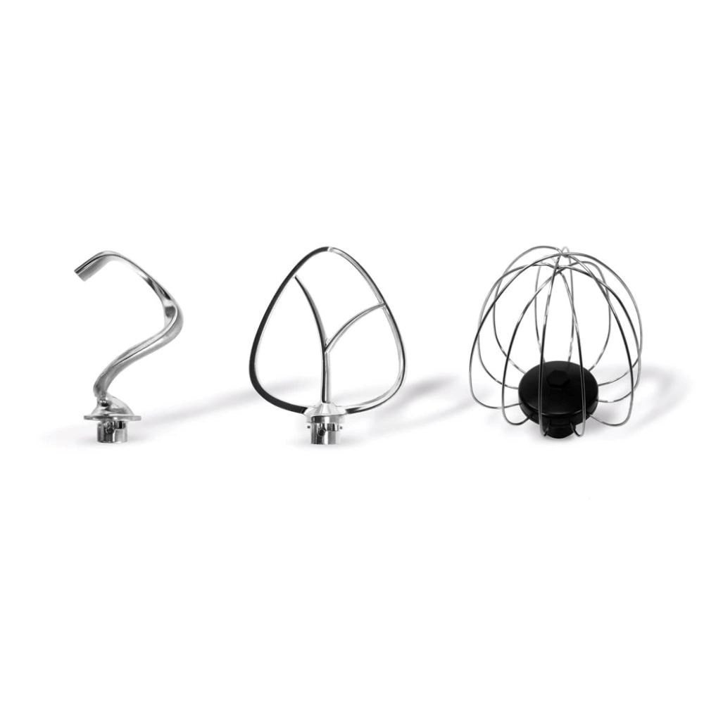Šľahacia balónová metla dokáže vyšľahať bielky do takej pevnosti, že môžete pokojne obrátiť misu hore dnom – a bielky sa ani nepohnú. Perfektne vyšľahaná šľahačka či krémový puding? Hotovo raz-dva! Ultrahlbká hliníková miešacia metla zase s ľahkosťou zvládne piškotové cestá na dorty či palacinky a hutnejšie nátierky. Špeciálne tvarovaný hnetací hák potom hravo spracuje hutné cestá na pizzu či chlieb, ale aj domáce rohlíky, chrumkavé housky alebo vláčne briošky na burgery. Taktiež už cítite, ako vám stiekajú sliny?
