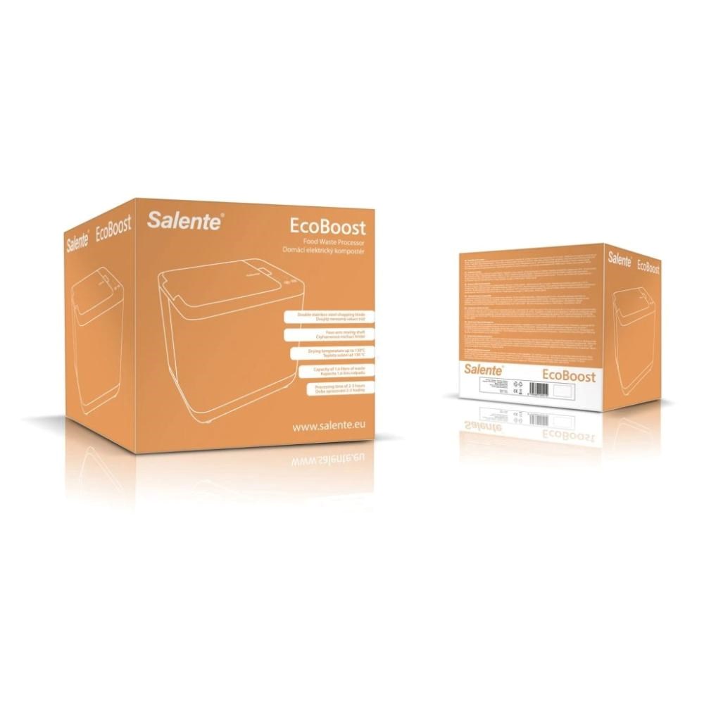 Salente EcoBoost, to je revoluce v nakládání s organickým odpadem. Napodobuje totiž procesy, které se odehrávají v přírodě, ale dělá to u vás doma a v dramaticky zrychleném tempu. Tento elektrický kompostér pracuje na promyšleném třífázovém principu. Nejdříve organický odpad během fáze sušení dehydratuje – při přesně kontrolované vysoké teplotě 130 °C, která současně zlikviduje 99,9 % bakterií a dalších nežádoucích mikroorganismů. Následuje fáze mletí, kdy se vysušený materiál pomocí nerezového nože a míchací hřídele rozemele na jemný substrát. A posledním krokem je chlazení, po němž už je výsledný produkt připravený k bezpečnému použití.
