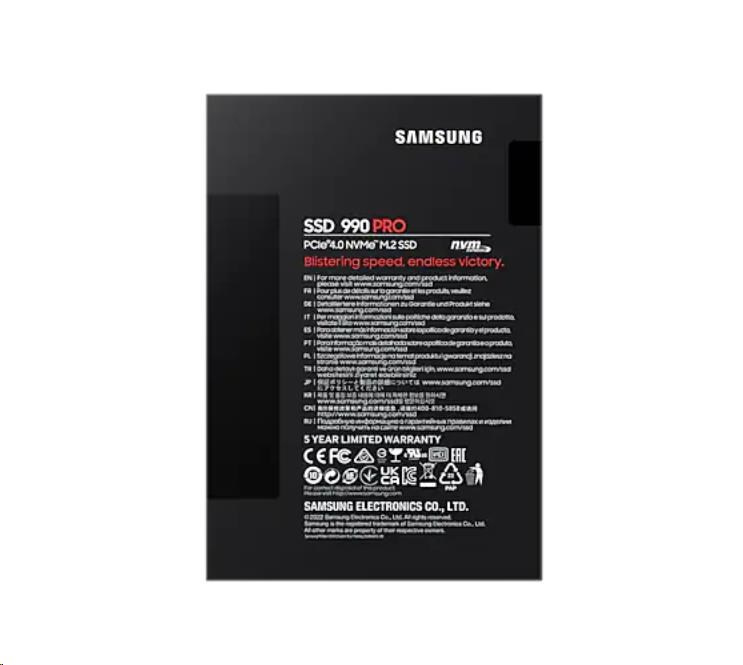 990 PRO prináša rýchlosti, ktoré budete milovať. V porovnaní s 980 PRO dosahuje 40% nárast v sekvenčnom čítaní a 55% v sekvenčnom zápise. Výsledkom sú vysoké hodnoty 1550K a 1400K IOPS či 7450 a 6900 MB/s v rámci sekvenčného čítania a zápisu, čo sa blíži maximálnym teoretickým rýchlostiam samotného rozhrania PCIe 4.0. Obľúbené herné tituly, výsledky dátovej analýzy, upravené videá aj 3D modely budú načítané skôr, než povieš SSD. *Výkon sekvenčného a náhodného zápisu bol meraný s aktivovanou technológiou Intelligent TurboWrite. Tá funguje iba v rámci určitej veľkosti prenosu dát. Výkon sa môže líšiť v závislosti od použitého firmvéru SSD, hardvéru, konfigurácie systému a ďalších faktorov. Podrobné informácie poskytne vaše miestne servisné stredisko. *Konfigurácia testovacieho systému: 8-jadrový procesor AMD Ryzen 7 5800X na frekvencii 3,8 GHz, DDR4 3600 MHz 16 GB × 2 (PC4-25600 OC), OS - Windows 10 Pro 64-bit, Čipset ASRock-X5. *Ak chcete maximalizovať výkon 990 PRO, skontrolujte, či váš systém podporuje rozhranie PCIe 4.0 na webových stránkach výrobcov Intel alebo AMD. *4TB verzia bude dostupná počas roka 2023.