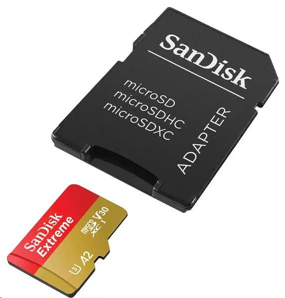 Karta SanDisk micro SDXC 128 GB Extreme (190 MB/s Class 10, UHS-I U3 V30) + adaptér