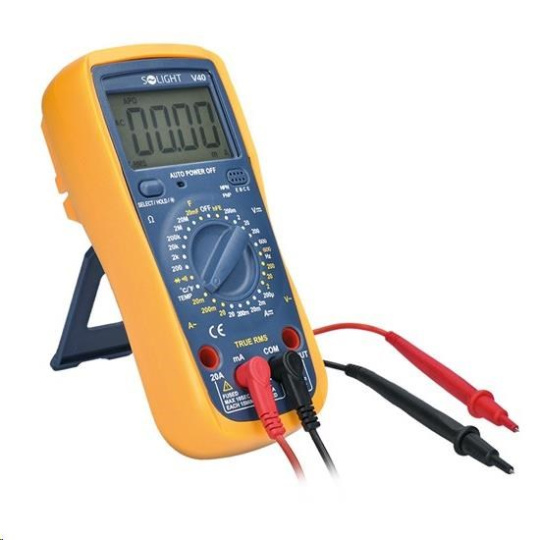 meranie prúdu, napätia, odporu, frekvencie, kapacity, teploty meranie true RMS (efektívna hodnota striedavých priebehov) tranzistorový a diódový test test spojitosti obvodu, vodivosťový test meranie parametrov hFE automatické vypnutie podsvietený displej uchovanie poslednej meranej hodnoty indikácia vybitej batérie ochrana proti preťaženiu elektronická poistka pri preťažení (pri preťažení sa sama obnoví, nie je nutná výmena) rozsahy: DCV: 200mV - 600V ACV: 2V - 600V DCA: 200uA-20A ACA: 20mA-20A OHM: 200ohm-20Mohm frekvencia: meranie frekvencie napájacej siete kapacita: 20nF-20mF teplota: -40°C-1000°C prevádzková teplota: 0 - 40°C napájanie: 9V batéria rozmery: 189x89x55mm