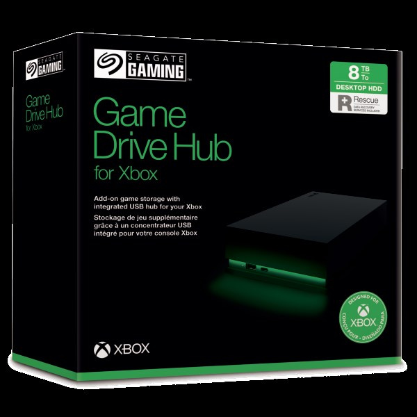 Ponorte sa do hry s Game Drive Hub pre Xbox. Vytvorte si prémiový Game Vault s 8TB úložiskom, zatiaľ čo odvážny dizajn hubu dopĺňa vašu hernú stanicu Xbox. Vstavaný LED svetelný pruh osvetlí vaše herné centrum zeleno, zatiaľ čo dva predné porty USB-C a USB-A udržia všetky vaše nevyhnutnosti nabité a pripravené na použitie.