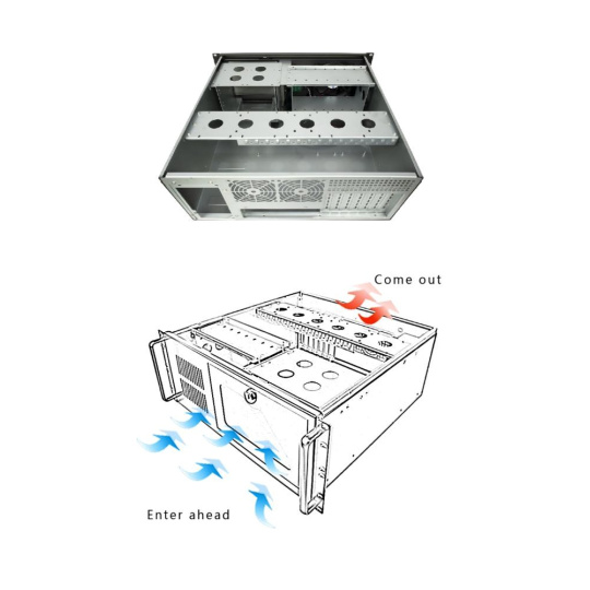 IPC 4U-450 je vysokokvalitná serverová skriňa určená na montáž do 19" racku. Skriňa je vyrobená z 1,2 mm hrubého plechu, ktorý sa v dnešnej dobe vyskytuje len zriedkavo. Predný panel je zakrytý uzamykateľnými kovovými výklopnými dvierkami. Keď je panel zatvorený, cez priehľadnú časť dvierok sú viditeľné len kontrolky LED. Po otvorení dverí sú k dispozícii ostatné ovládacie prvky.