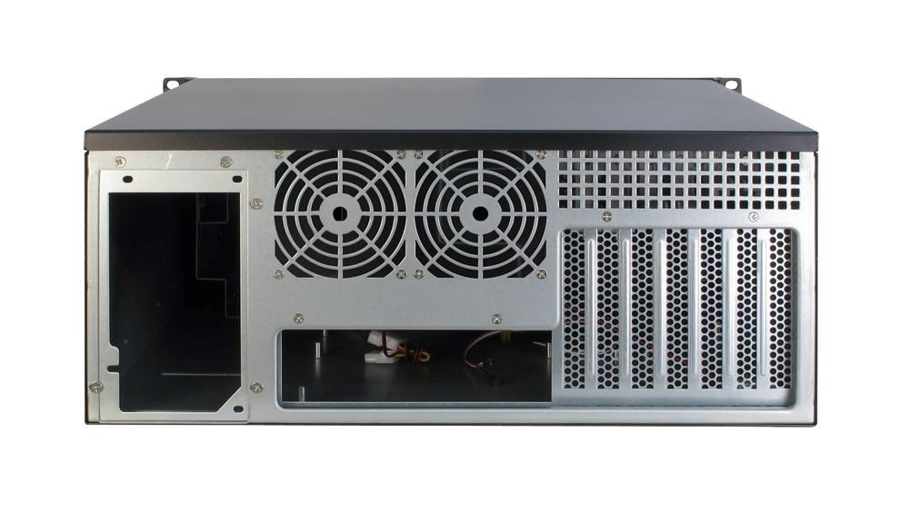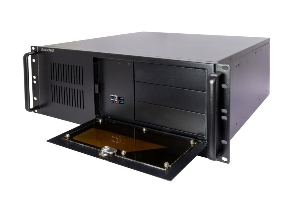 IPC 4U-450 je vysokokvalitná serverová skriňa určená na montáž do 19" racku. Skriňa je vyrobená z 1,2 mm hrubého plechu, ktorý sa v dnešnej dobe vyskytuje len zriedkavo. Predný panel je zakrytý uzamykateľnými kovovými výklopnými dvierkami. Keď je panel zatvorený, cez priehľadnú časť dvierok sú viditeľné len kontrolky LED. Po otvorení dverí sú k dispozícii ostatné ovládacie prvky.