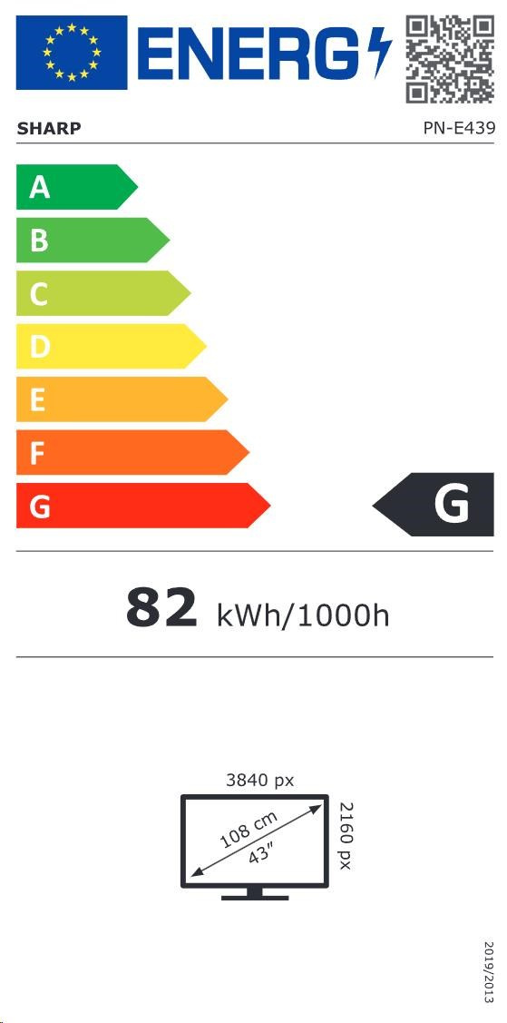 SHARP LFD 43" MultiSync E439, IPS, 3840x2160, 350nit, 1200:1, 8ms, 16/7, VGA, HDMI, LAN, RS232, USB-C