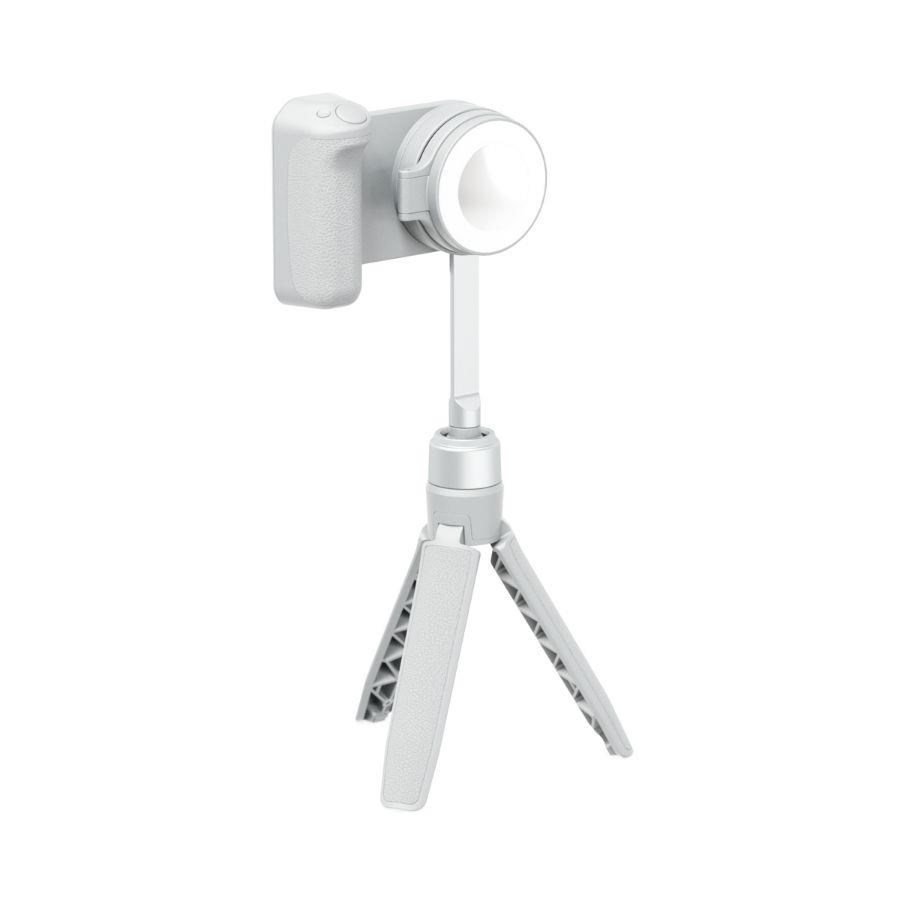 SnapPocket Light je malý svetelný LED kruh, ktorý sa magneticky pripája ku telefónu a/alebo systému SnapGrip. Ponúkne vám celkom štyri úrovne jasu. Svetlo môžete rôzne nakláňať, a dokonca aj úplne preklopiť, kým nedosiahnete uhol, ktorý potrebujete pre dokonalé osvetlenie scény. V strede svetla sa nachádza malé zrkadlo, ktoré vám umožní skontrolovať odraz a dokonale ho vycentrovať pre bezchybné selfie.SnapStand Mini statív a selfie tyč v jednom