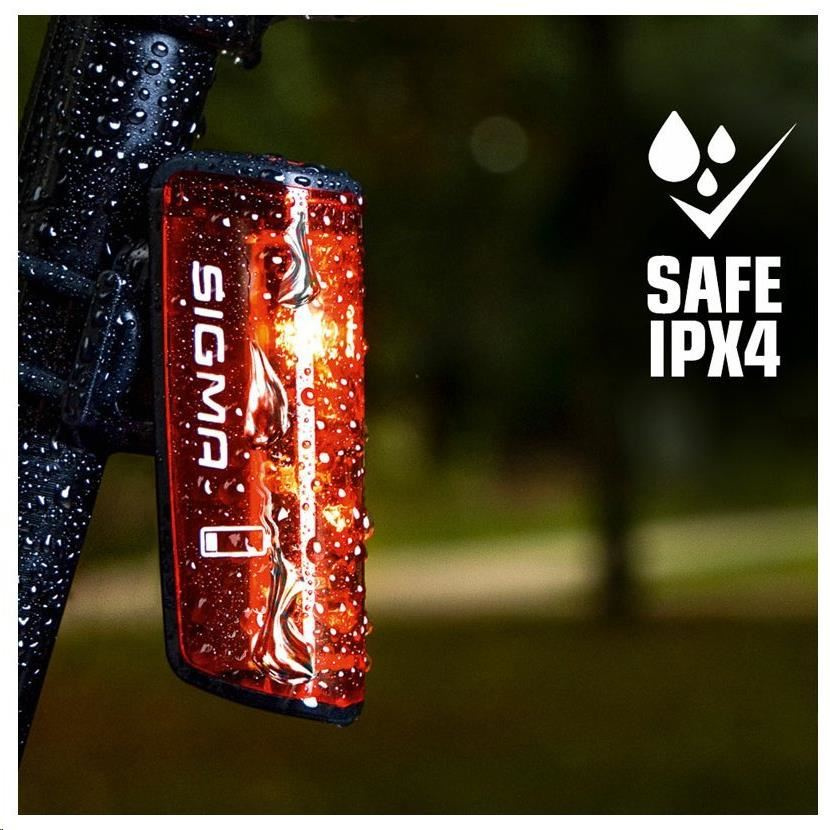 Integrovaný snímač zrýchlenia umožňuje trom jasným LED diodám signalizovať brzdenie ostatným na ceste. Brzdové zadné svetlo tak zvyšuje bezpečnosť pre všetkých účastníkov cestnej premávky. Svetlo je možné používať aj počas dňa bez trvalého svietenia. Je to praktická vlastnosť, najmä pri jazde vo skupine.