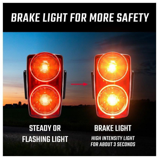 Integrované zadné brzdové svetlo zvyšuje bezpečnosť pre všetkých účastníkov cestnej premávky. Svetlo Buster RL 150 pri každom brzdení výrazne zvýši svoju intenzitu svietenia na dobu 3 sekúnd.