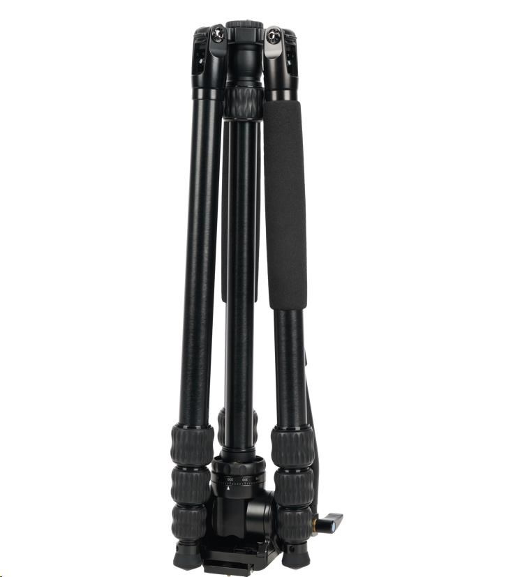 Vďaka protišmykovým gumeným hrotom nožičiek a dodávaným kovovým hrotom bude statív stáť pevne a bezpečne na akomkoľvek povrchu. Pre väčšiu stabilitu môžete pomocou háčika na spodnej strane stredového stĺpika zavesiť ďalšie závažia, napríklad batoh. Pomocou otočných zámkov je možné 4 časti nôh ľahko uvoľniť a znova uzamknúť. Mäkká rukoväť z penovej gumy zaisťuje bezpečné uchopenie v každej situácii. V zime slúži penová guma aj ako ochrana pred chladom.