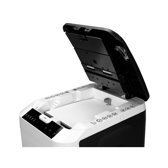 Atraktívne navrhnutá skartovačka pre stredne veľké kancelárie. Vhodný na skartovanie dokumentov so šírkou 240 mm. Stroj je štandardne vybavený automatickým systémom štart/stop, spätným chodom, tepelnou ochranou proti prehriatiu motora a alarmom preplneného koša. Príležitostne je možné skartovať sponky, kreditné karty a CD. Veľmi tichá prevádzka stroja. Nádoba na odpad s priehľadným okienkom. Prístup na CD a kreditnú kartu. Separovaný odpad. Pojazdné kolieska na ľahkú manipuláciu. Farba sivo-biela Hmotnosť (kg) 25 Kapacita (listy 70g/m2) 15 Objem koša (L) 38 Pracovná šírka (mm) 240 Príkon W/V 530/230 Rozmery (mm) 404 x 350 x 667 Rozmery rezu (mm) 2 x 10 Rýchlosť (mm/s) 50 Zošívačky, sponky, CD a platobné karty Funkcia štart/stop Áno Stupeň utajenia GDPR P5 - osobné údaje zamestnancov, majetok, mzda Typ rezu Krížový rez Záruka (mesiace) 24 Reverzácia Áno..