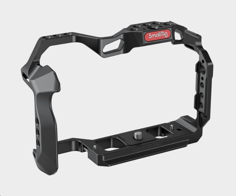 Ľavá strana klietky podporuje káblovú svorku SmallRig 2981. Horná časť je vybavená držiakom na mikrofóny a LED svetlami.