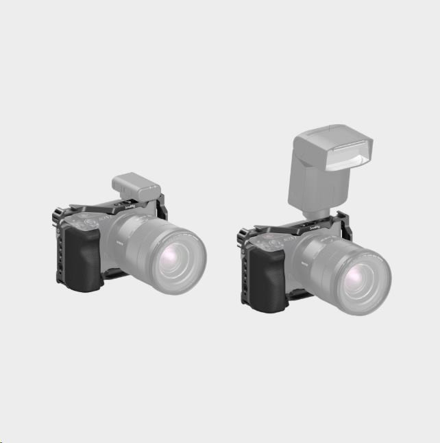 včetně závitových otvorů 1/4"-20 a polohovacích otvorů ARRI 3/8"-16 pro horní rukojeť SmallRig 3765, boční rukojeť 2913, jeden horní polohovací otvor ARRI 3/8"-16 pro držák monitoru SmallRig 2903, dva držáky studené patky pro mikrofon, LED video světlo a spodní zásuvka QD pro ramenní popruh.