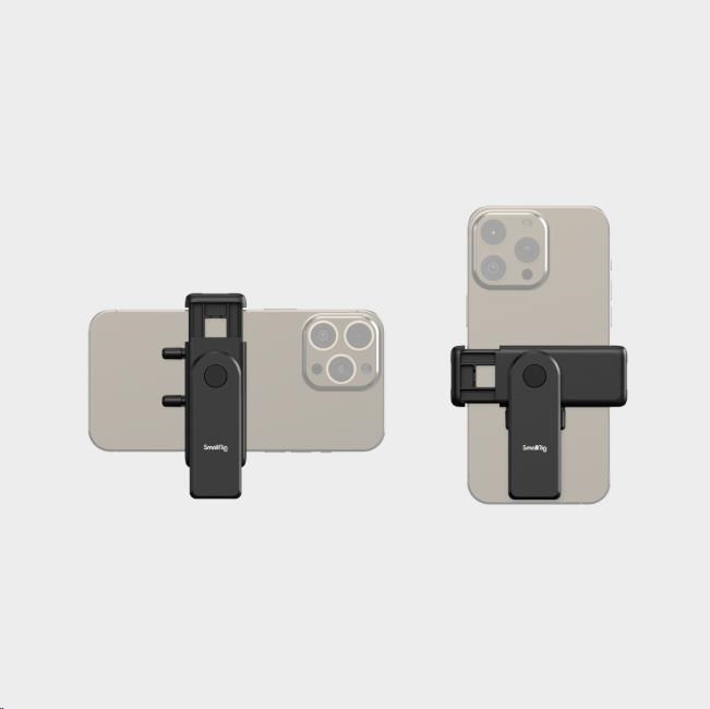 Jedním šroubem 1/4"-20 se stativ připevní k držáku chytrého telefonu, který má dva úchyty cold shoe pro mikrofon, LED video světlo atd.