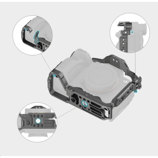 Otvory na bocích a dně klece umožňují připevnění takového příslušenství, jako je popruh SmallRig na ruku 2456.