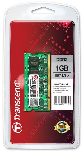 SODIMM DDR2 1GB 667MHz TRANSCEND JetRam™, 128Mx8 CL5