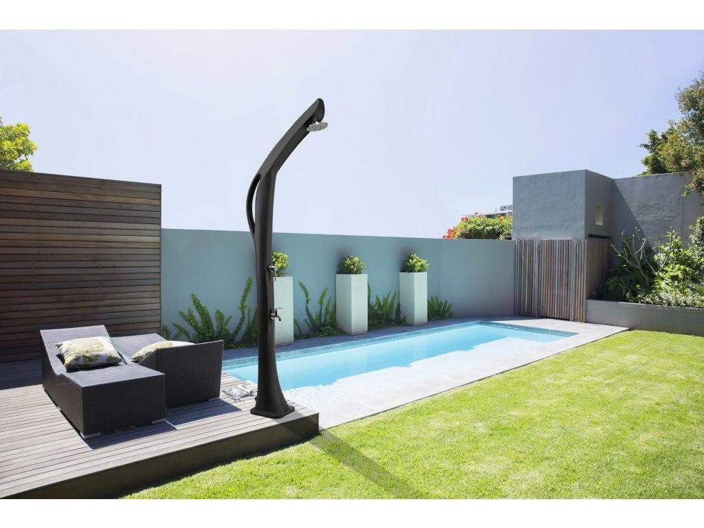 Solárna sprcha je ideálnym zdrojom teplej vody bez použitia elektriny. Voda sa v solárnom zásobníku jednoducho ohreje slnečným žiarením na teplotu až 60°C. K tomu prispieva aj čierne prevedenie sprchy. Sprcha je vybavená miešacou pákovou batériou, aby ste si mohli nastaviť teplotu vody podľa vašej požiadavky.