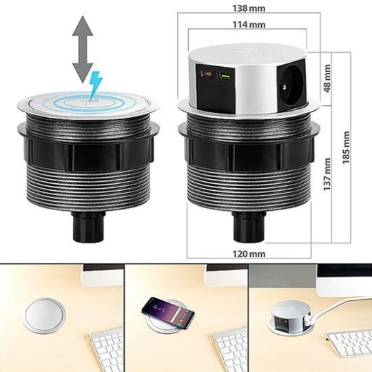bezdrôtová nabíjačka telefónov v hornej krytke, rýchlonabíjanie USB A+C