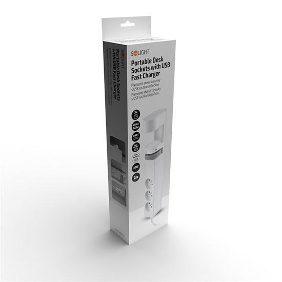 .Solight 3z + USB A+C přenosné stolní zásuvky, 2m, bílá, USB rychlonabíječka 20W PD