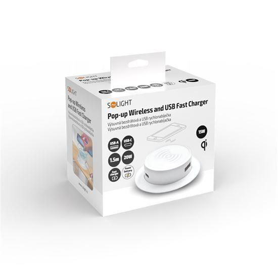 .Solight bezdrátová 15W + USB A+C 20W PD výsuvná nabíječka, bílá