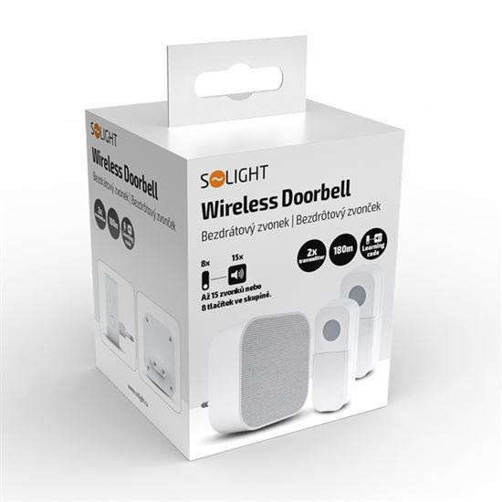 Solight bezdrátový zvonek, 2 tlačítka, do zásuvky, 180m, bílý, learning code
