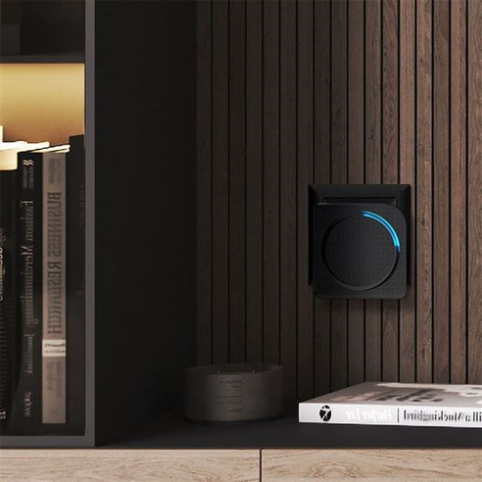 jeden zvonček zapojený do zásuvky a druhý prenášateľný na batérie.