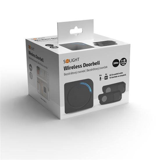 Solight bezdrátový zvonek, 2 tlačítka, do zásuvky, 200m, černý, learning code