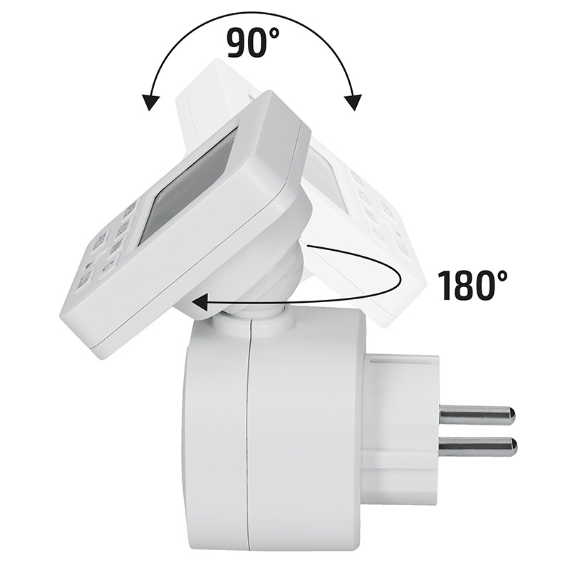 Digitálny programovateľný časovač s detskou poistkou, ktorý môže byť výborným pomocníkom pre spúšťanie Vašich elektrospotrebičov v tú správnu chvíľu. Časovač je vybavený možnosťou nastavenia pre 18 spínacích cyklov a 15 režimov opakovania podľa Vašich požadovaných dní a hodín. Ďalšou možnosťou je režim náhodného časového spúšťania alebo odpočtu.