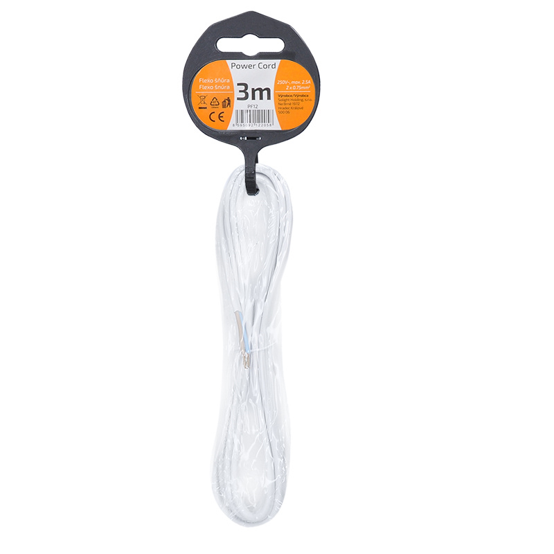 Solight flexo šňůra, 2x 0,75mm2, bílá, plochá, 3m