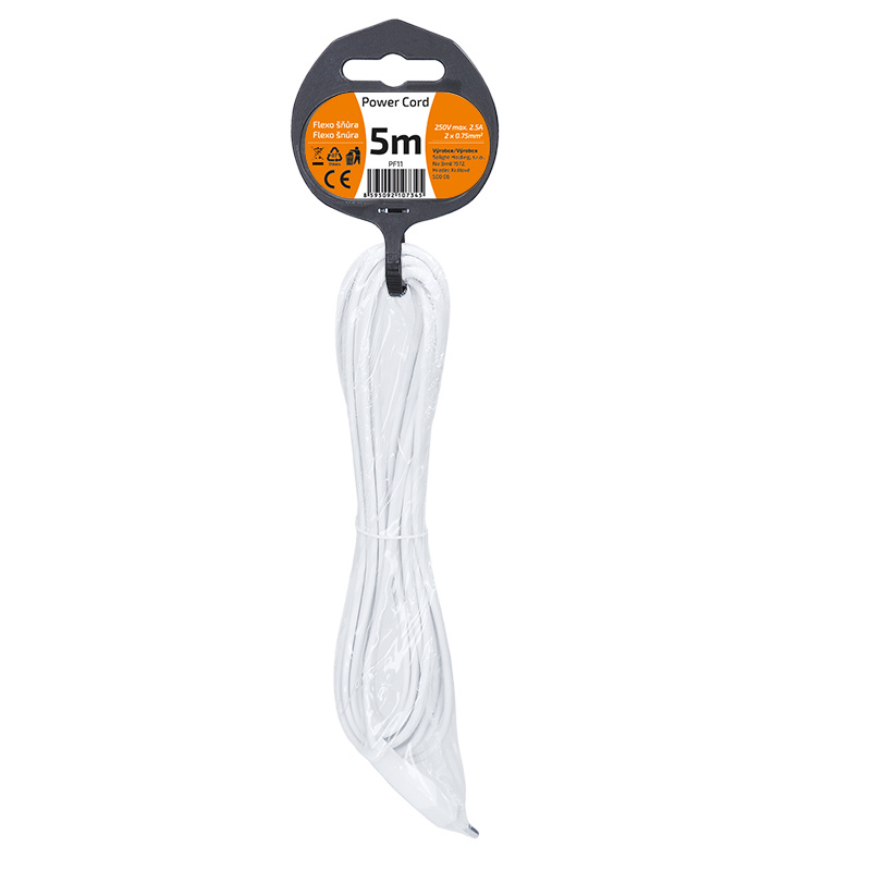 .Solight flexo šňůra, 2x 0,75mm2, bílá, plochá, 5m
