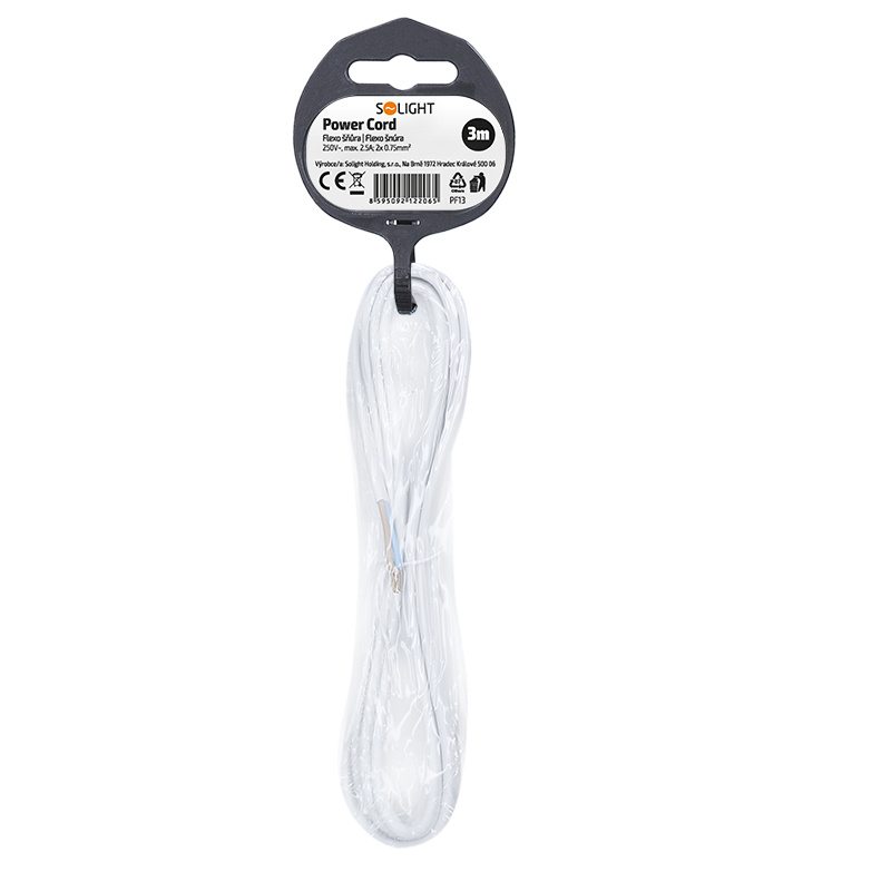 .Solight flexo šňůra, 2x 0,75mm2, bílá, plochá, vypínač, 3m