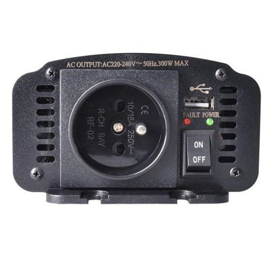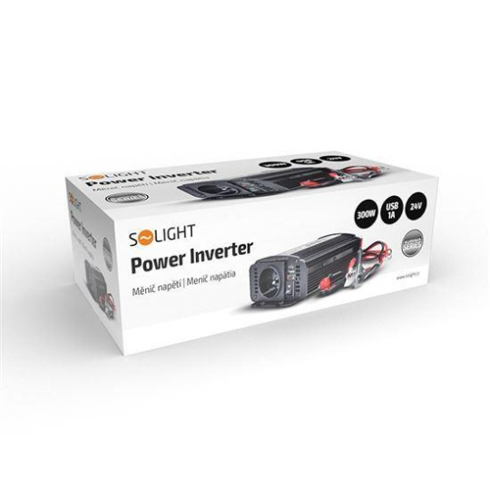 .Solight invertor 12V, USB 500mA, kovový, černý, max. zatížení: 300W