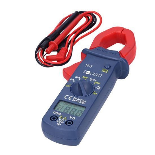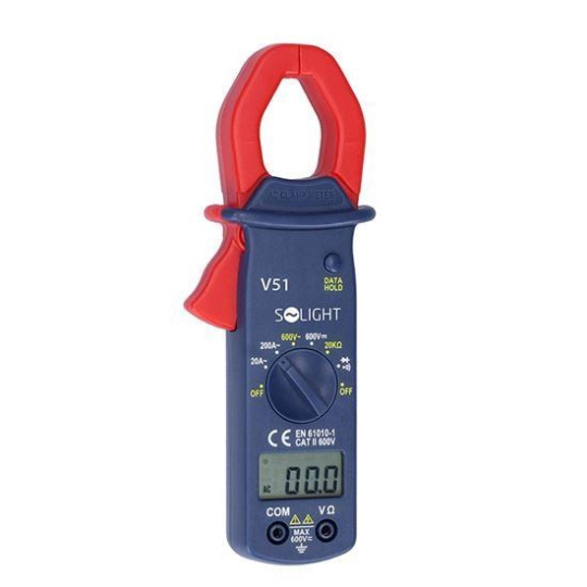 Digitálny multimetr s max. zobrazením 2000 hodnôt a indikáciou slabého batérie. Ponúka automatické vypnutie po 15 minútach nečinnosti a akustickú výstrahu pred vypnutím. Meria DC napätie (600V), AC napätie (True-RMS, 600V), AC prúd (20A - 200A), odpor (20k?), a ponúka test spojitosti s bzučíkom (hranica sepnutia <50?). Test diod, funkcia Data Hold na uloženie hodnoty na displeji. Ochrana proti preťaženiu (250V DC/AC RMS). Napájanie: 2x AAA batérie (súčasť balenia). Rozmery: 195 × 70 × 35 mm, hmotnosť: 172 g. Norma: EN61010-1, CAT II 600V.